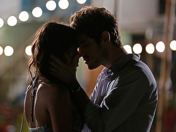 O arquiteto diz que sente falta da amada e os dois se beijam apaixonados